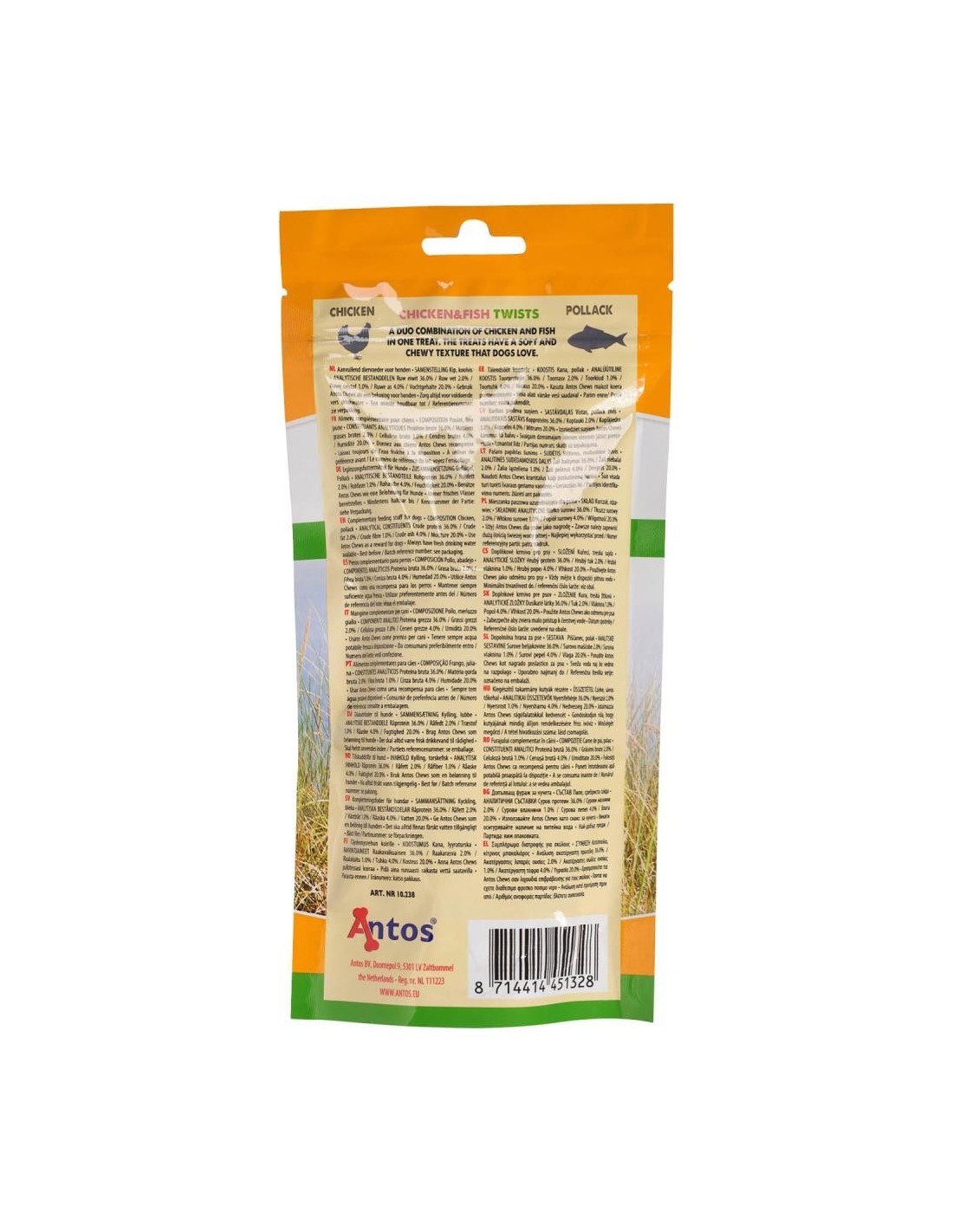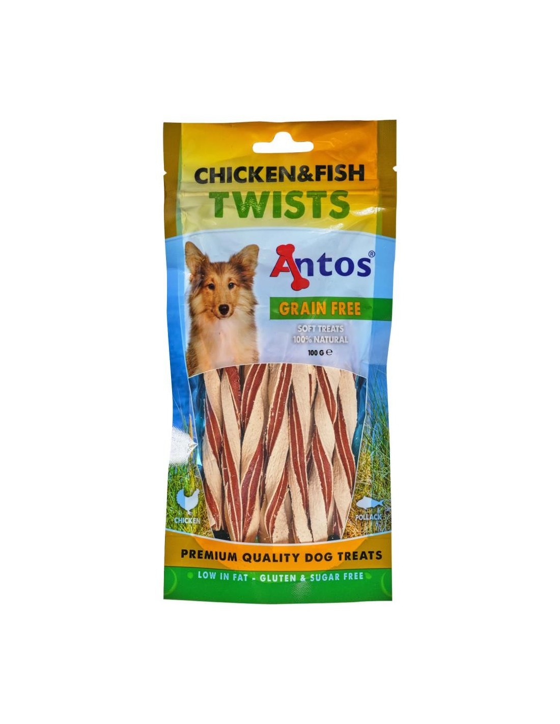 Lamelles de poulet et poisson doubles naturelles . CHICKEN&FISH TWISTS 100 GR :