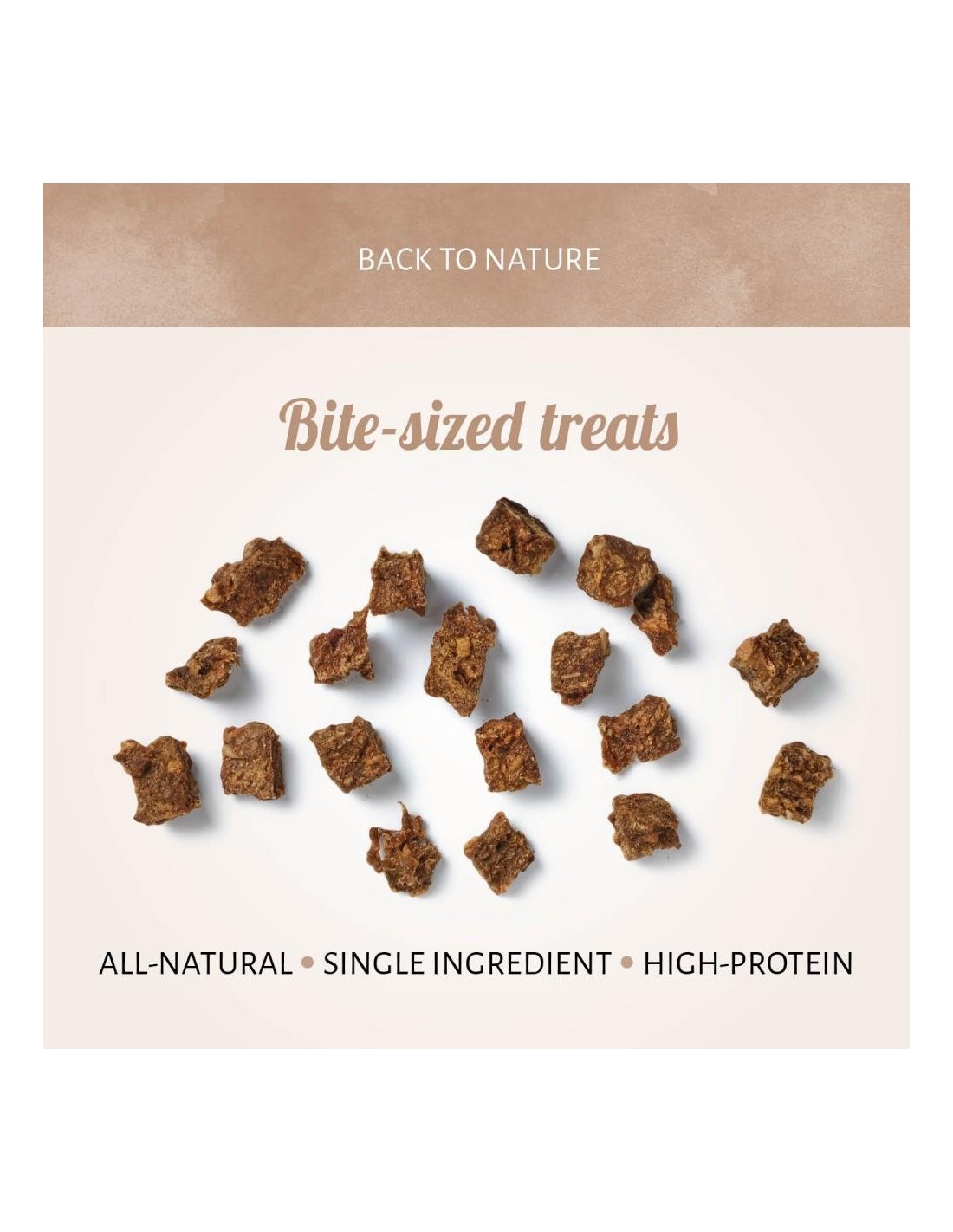 Ces petits morceaux de viande 100% canard et naturels, restent frais grâce à son sachet emballage possédant un zip refermable.