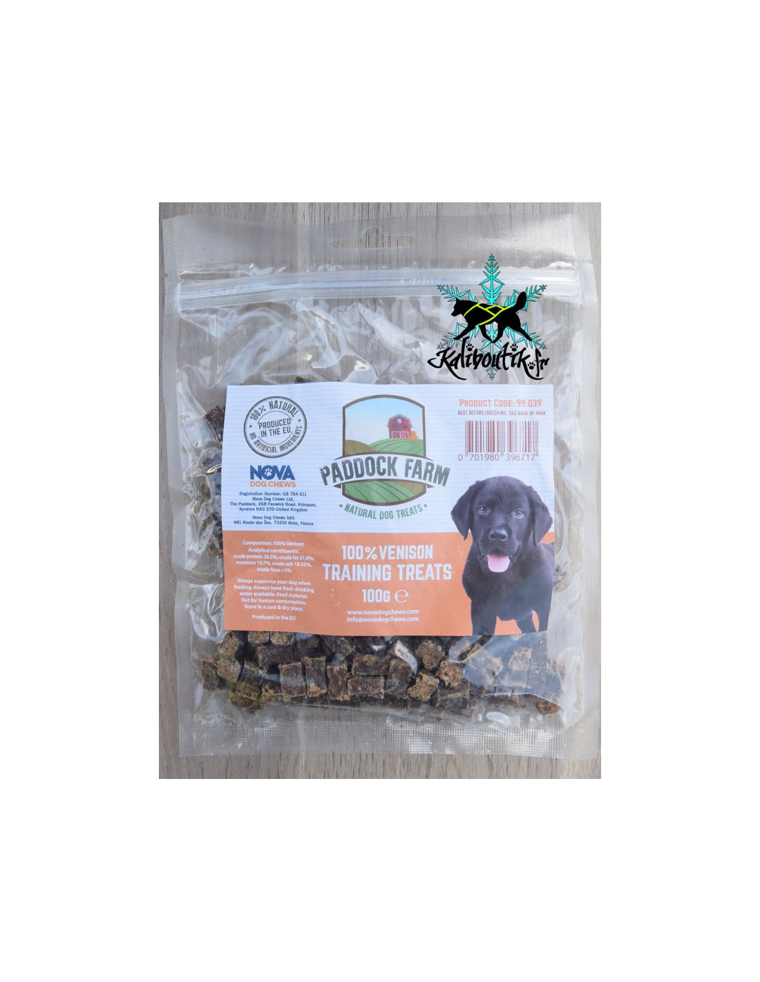 Ce snack savoureux et sain est composé à 100% de viande de chevreuil déshydratée et constitue une excellente récompense pour l'éducation de votre chiot ou de votre chien. En plus d'être un choix parfait pour les séances d'entraînement, ces en-cas sont également un excellent moyen de faire plaisir à votre compagnon à quatre pattes. Que ce soit pour l'agility, l'obérythmée ou toute autre activité sportive canine, ces friandises savoureuses offriront à votre chien un délicieux goût en guise de récompense.